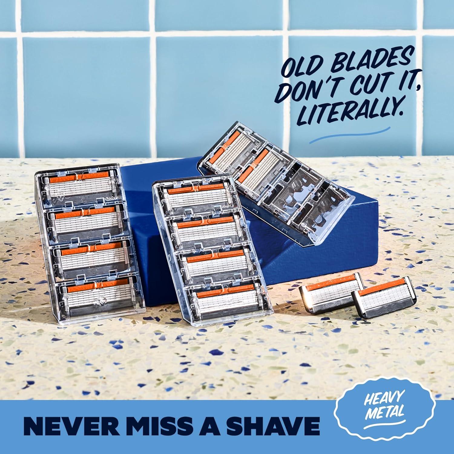 Dollar Shave Club | The Guest Pass Shave Set | 2 Extra Close Refill Cartridges, 1 Handle (Blue), 1 Razor Cover, Razors for Men(Metallic)