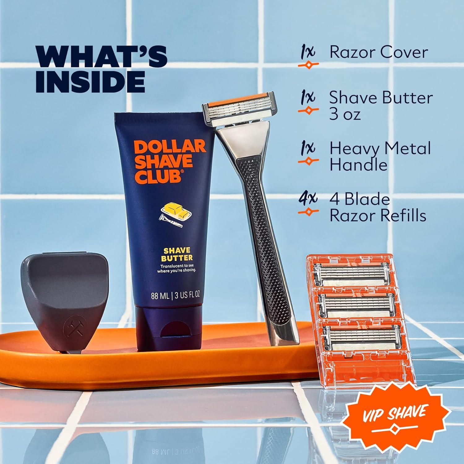 Dollar Shave Club | The VIP Shave Set | 4 Swift Rinse Refill Cartridges, 1 Heavy Metal Handle, 1 Shave Butter 3 ounce, 1 Razor Cover, Razors for Men