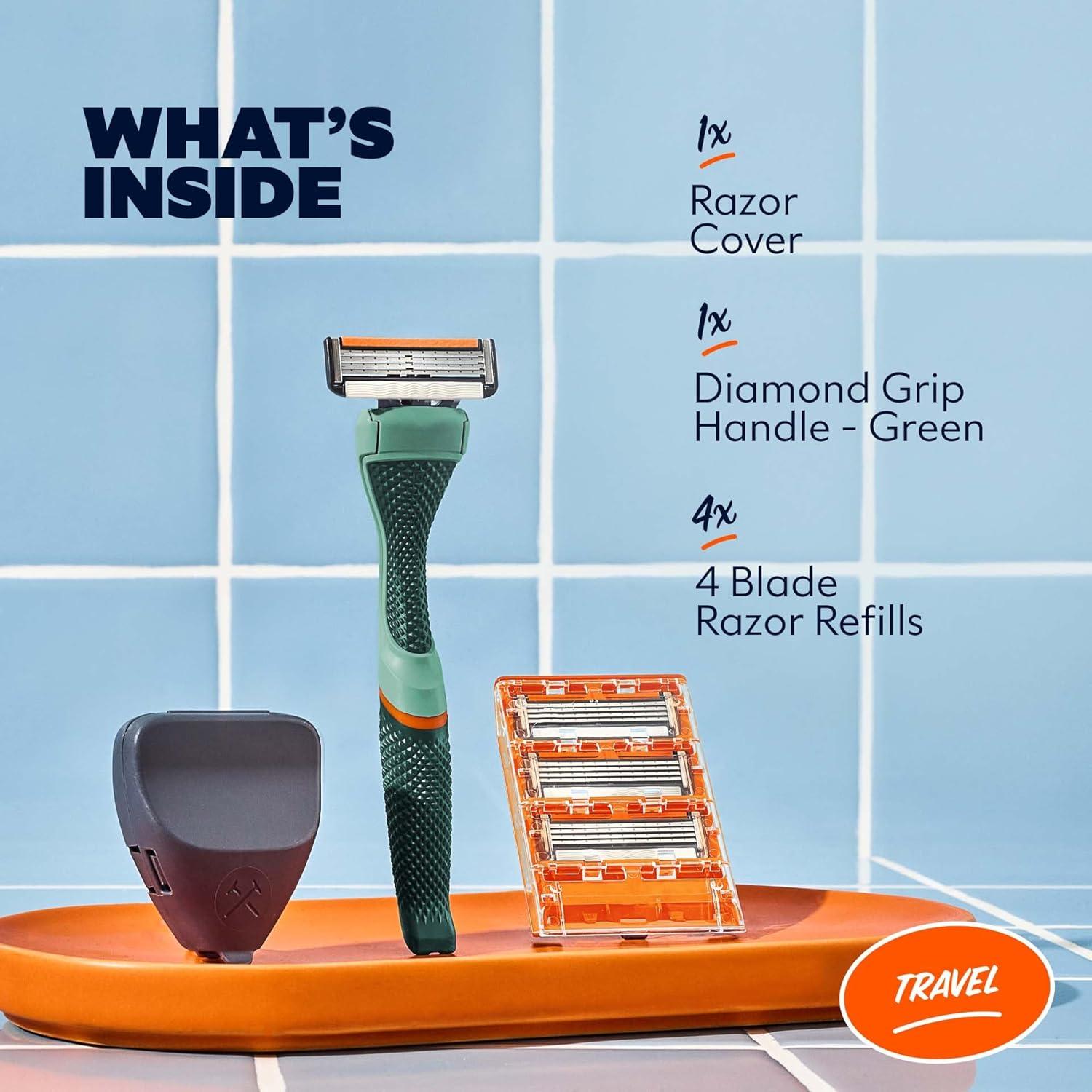 Dollar Shave Club | Travel Shave Set | 4 Swift Rinse Refill Cartridges, 1 Handle (Black), 1 Razor Cover(Green)